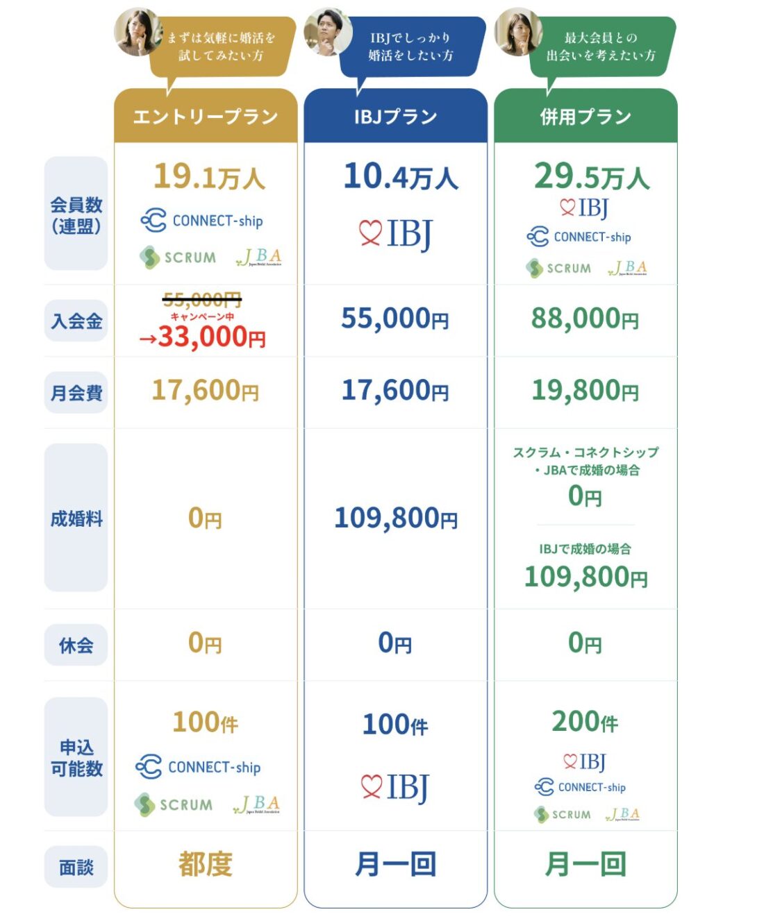 会員の質が良いとされているIBJ会員と出会いたいけど、結婚相談所の料金はできるだけ抑えたいという方にぴったりです。